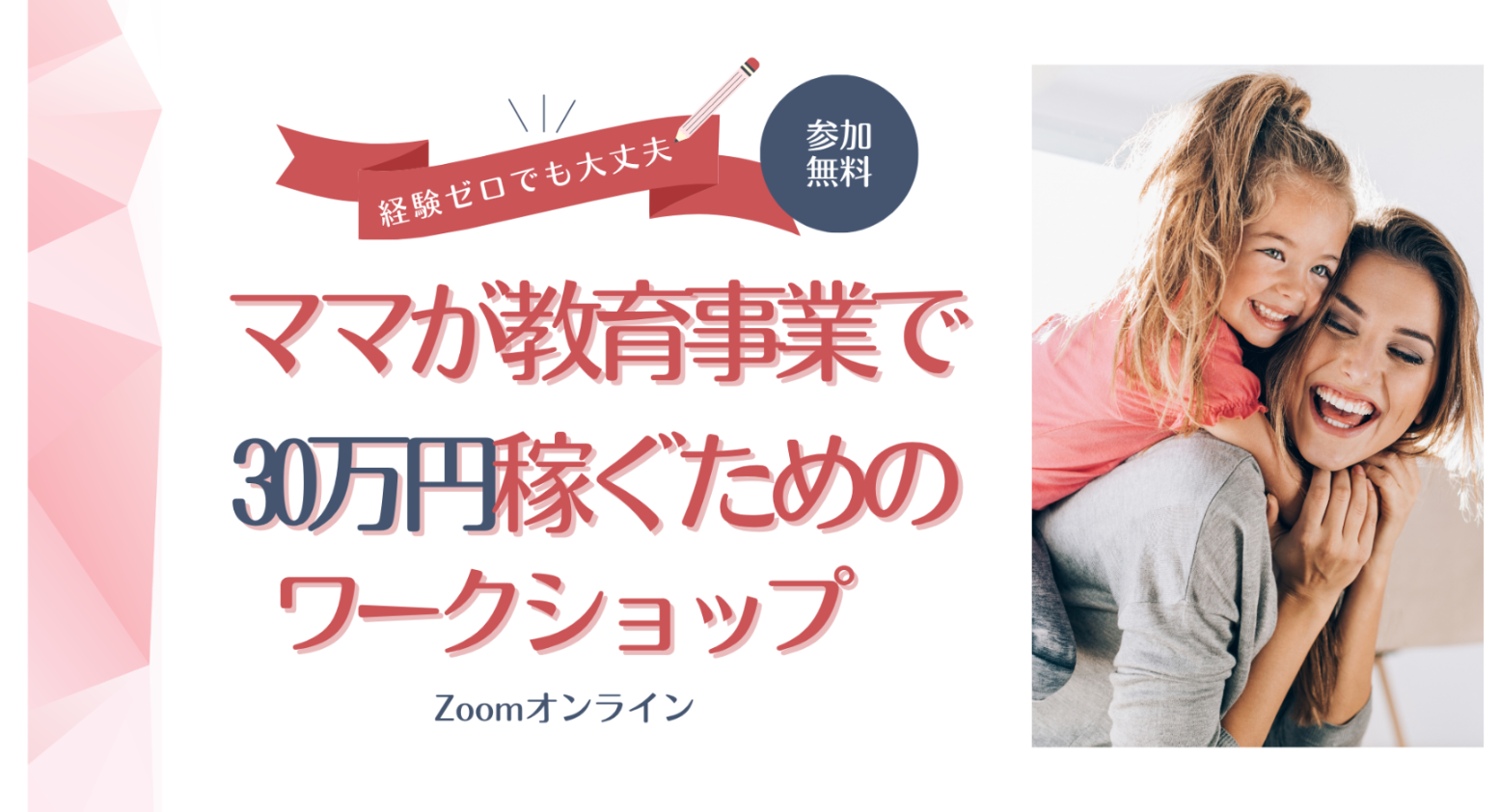 「ママが教育事業で30万円稼ぐためのワークショップ」を開催します。